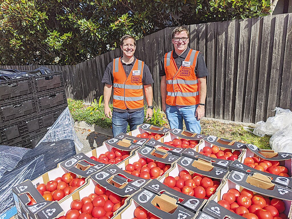 Esso's James Buckingham and Simon Kemp volunteering at the Farms to Families market. Photo: Contributed