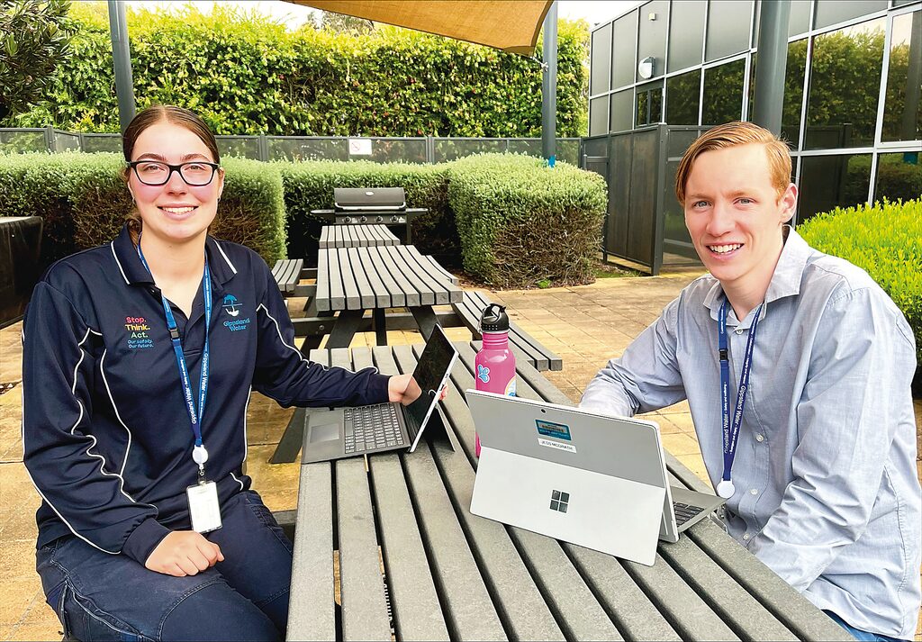 Gippsland Water Environment and Healthy Country vacation student Georgie Lambert and Business Transformation vacation student and former Richmond VFL footballer, Jess McGrath. Photo: Contributed