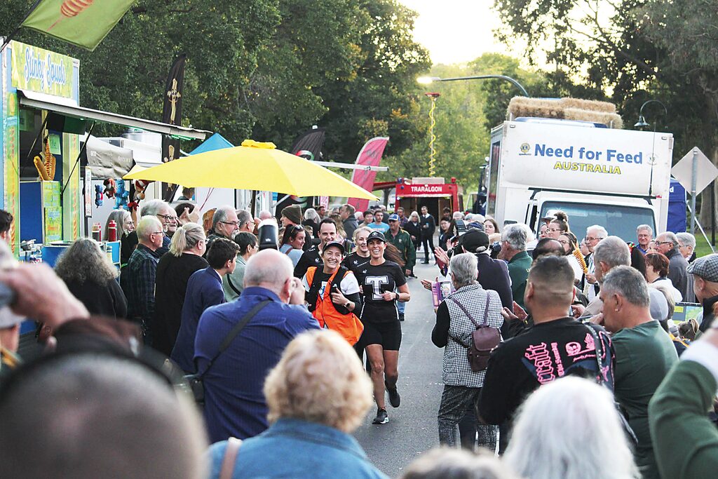 Ultra runner Sari-Elle Kraemer parts the crowd as she completes her 82km run from Licola. Photos: Aidan Knight