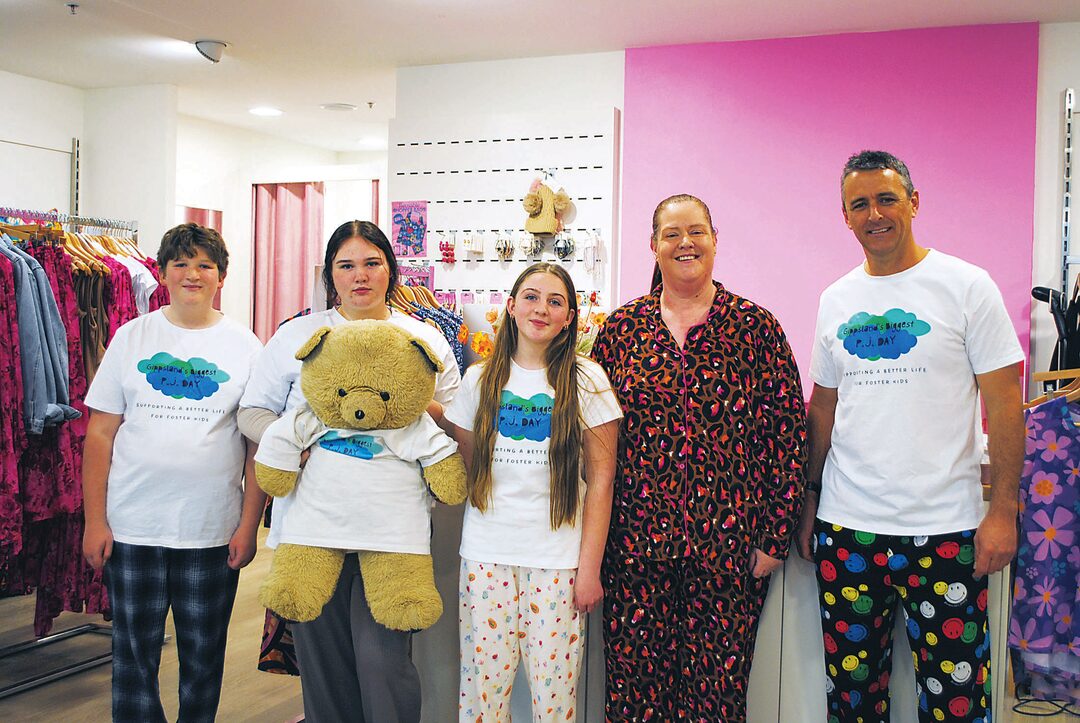 Jack, Georgia, Summer, Proud Poppy manager Denise, and Andrew. Proud Poppy owner Tara generously committed to donating bed linens to ABLFFK. Photo: Erika Allen