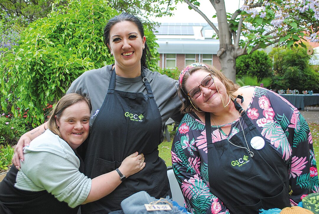 George Gray Centre participants Deb (left), Wendy (right), and staff member Jess were very excited to celebrate 60 years of breaking down barriers with Wellington Shire locals during last Friday's street carnival in Maffra.