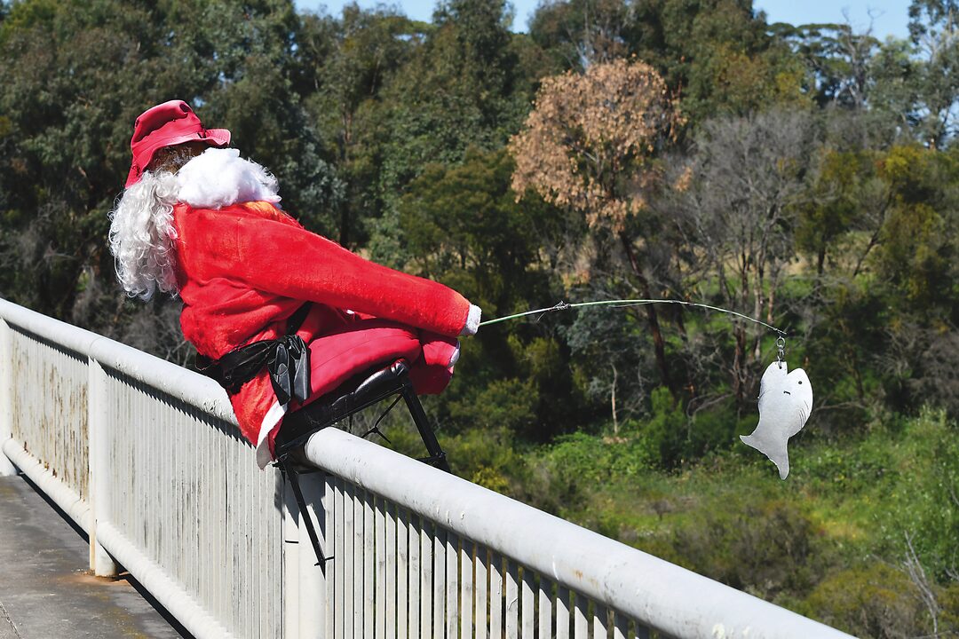 He’s back. Santa relaxes for a spot of fishing over the Avon River.