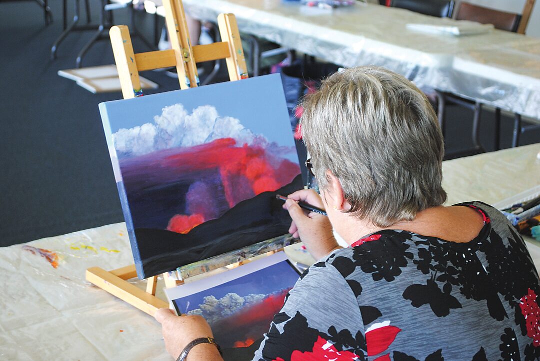 Gayle Harper is a founding member of Sale Art Circle. She was capturing recent bushfires in acrylic last Wednesday.