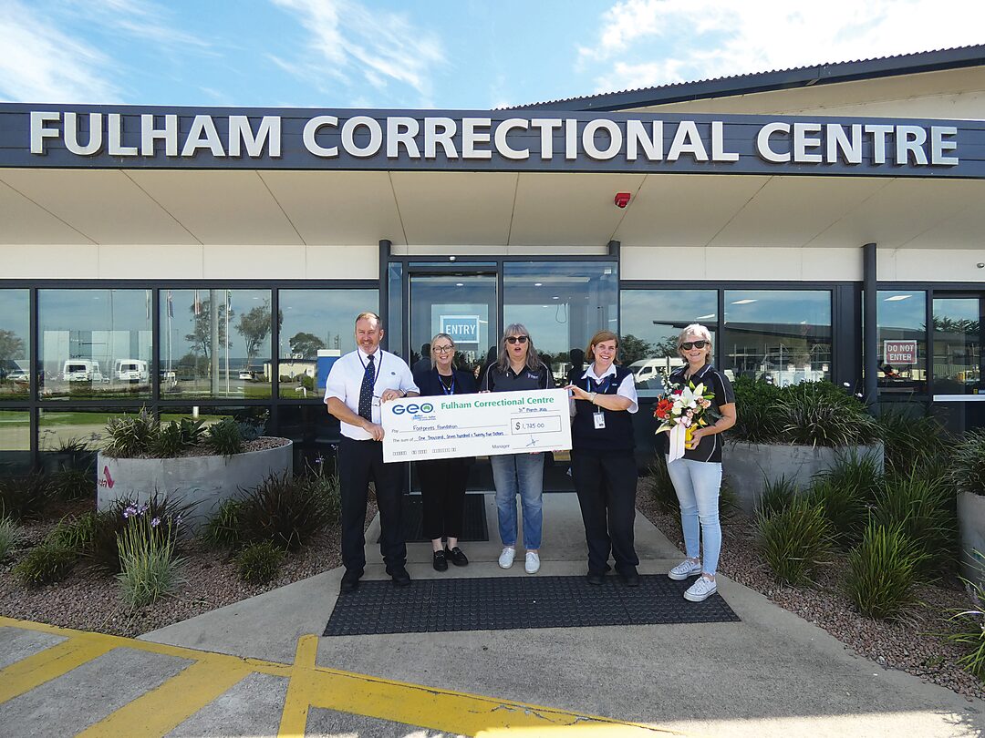 From left, Fulham Correctional Centre general manager Jim Watson, GEO operations director Natalie Greenfield, Footprints president Angela Jones, Fulham human resources manager Jodie Kennedy and Footprints treasurer Janine Roest. Photo: Contributed