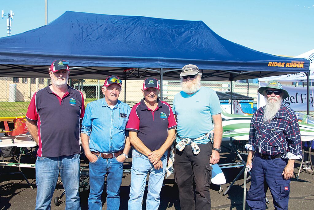 Members of the Sale and District Aeromodellers Club Arie Huts, Graham Duck, Bob Bennetts, Morten Madson and Russel Johnston.