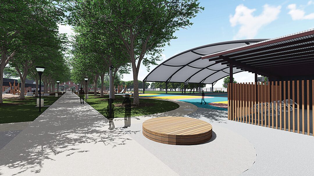Concept image of the undercover hardcourts and playground areas. Image: DOSCEL