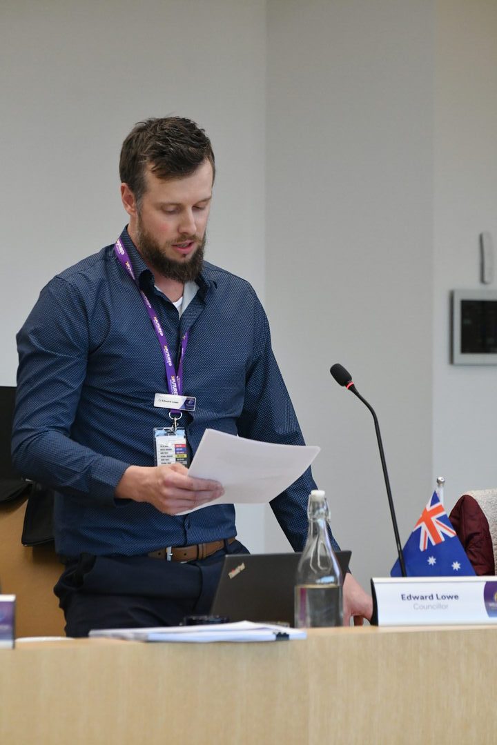 Councillor Edward Lowe successfully moved a notice of motion regarding the desecration of the Australian flag. Photos: Erika Allen