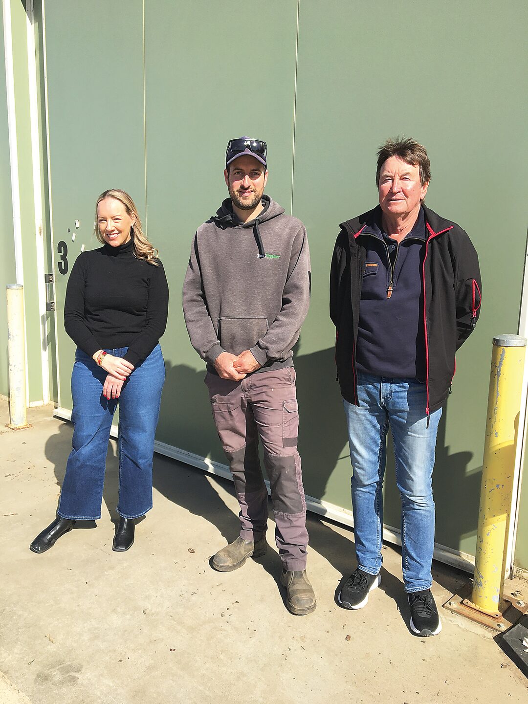 Member for Eastern Victoria Renee Heath during a recent visit to the Lindenow Valley with Kane Busch and John Hine. Photo: Contributed