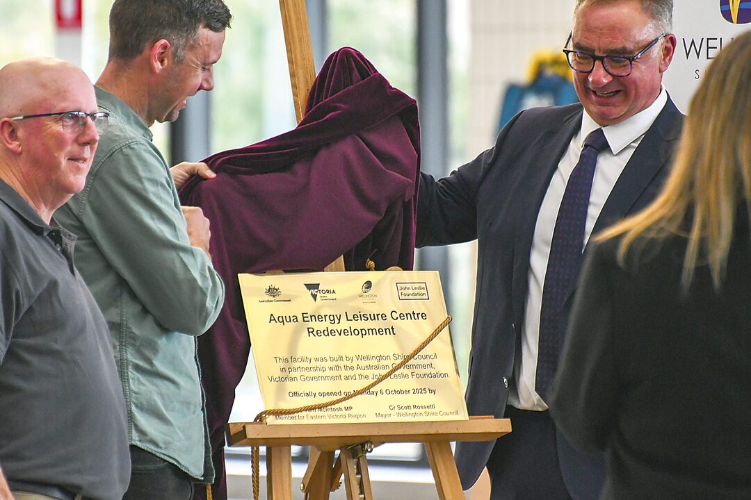 The plaque is unveiled by (from left) Stephen Chalmer, Tom McIntosh and Scott Rossetti.