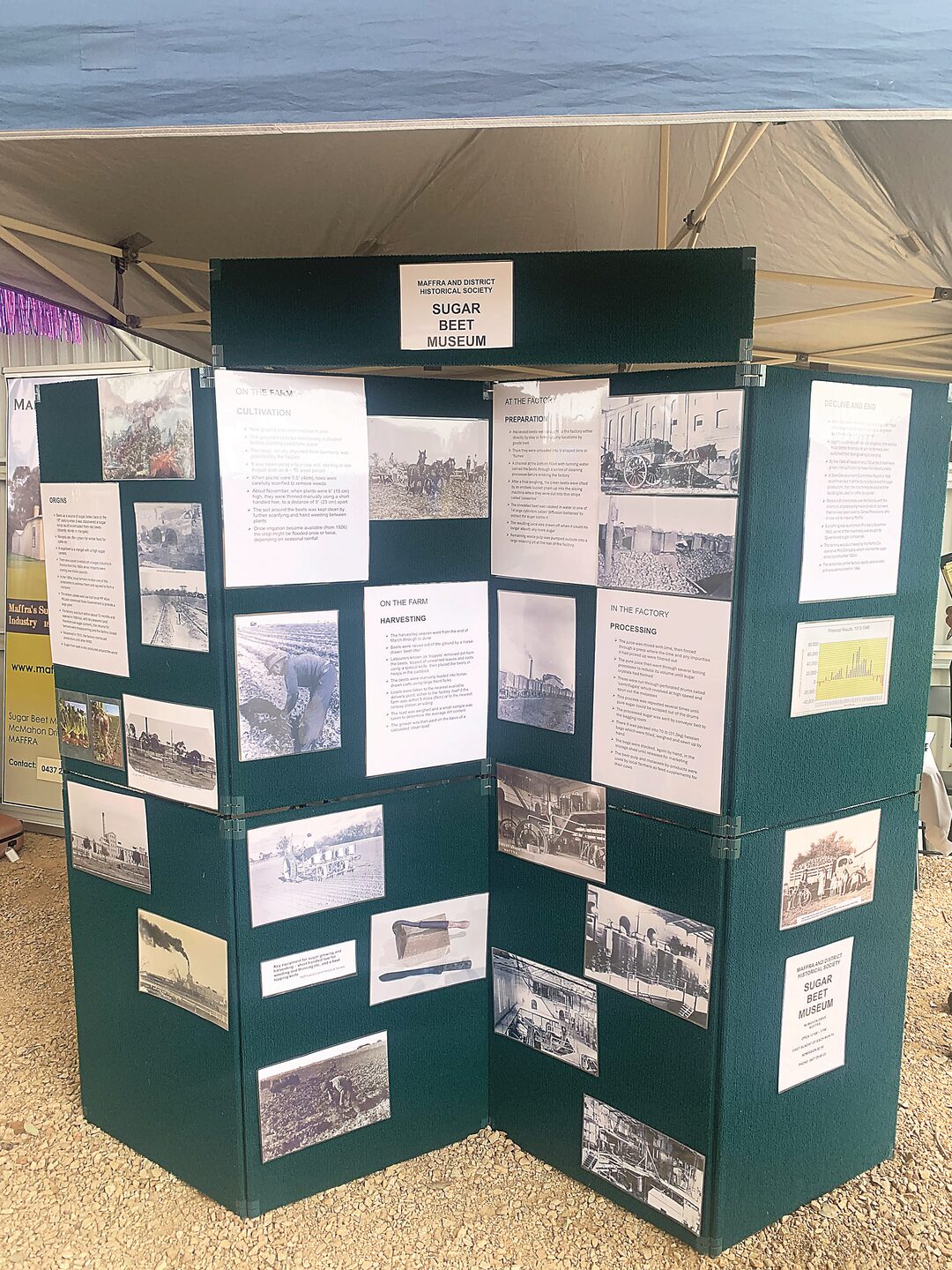 The Maffra and District Historical Society prepared an installation under The Dome about the history of sugar beet production and the Glenmaggie Weir wall.