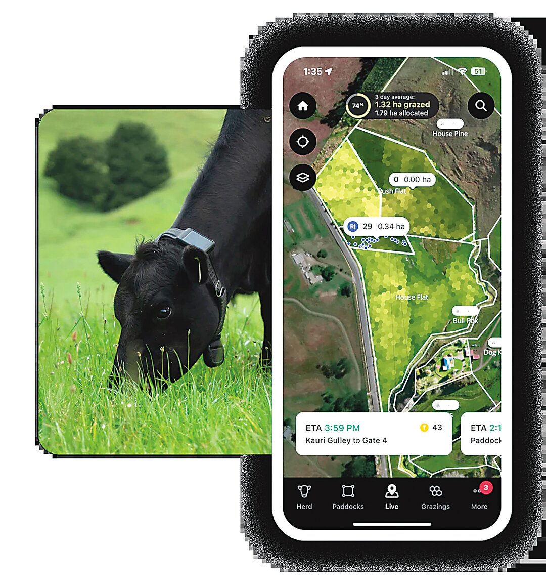 Farming start-up Halter, through its smartphone app and smart collar, creates virtual fencing for livestock. Image: Halter