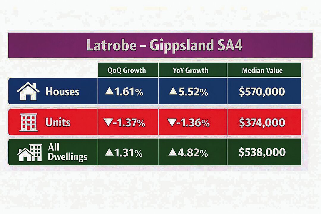 Home News Gippsland homes a median value of $538,000 Quarter-over-quarter (QoQ) and year-over-year (YoY) growth in the Latrobe-Gippsland SA4 region in January 2026. Image: Canva News Gippsland homes a median value of $538,000 Stefan Bradley 18/02/2026 FacebookTwitterEmail Median value of a home in Australia has hit a new record of just over $880,000 in January 2026, with […] Let's Stay Connected There’s no better way to stay connected with your local community than with a digital subscription to the Gippsland Times. Please subscribe or login to access all content. Username Password Remember Me Forgot Password Latest News Free webinars to help Gippslanders live more sustainably 18/02/2026 Residents across Gippsland are invited to take part in a free online webinar series focused on practical ways to make homes more comfortable, energy–efficient... Come and enjoy Wellington Shire’s great outdoors during Parks Week 18/02/2026 Rotary Club Sale helping nurses 18/02/2026 Come and enjoy our great outdoors for Parks Week 18/02/2026 Tom shows toughness in cancer battle 18/02/2026