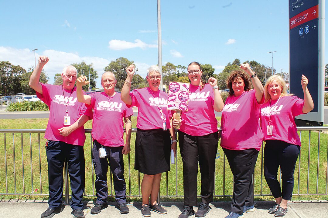 Latrobe Regional Health healthcare workers, Kevin Marriott, Phil, Alica Hearn, Jemma Hearn, Sue Patton and Angela strike in January. Photo: Peace Ijiyera