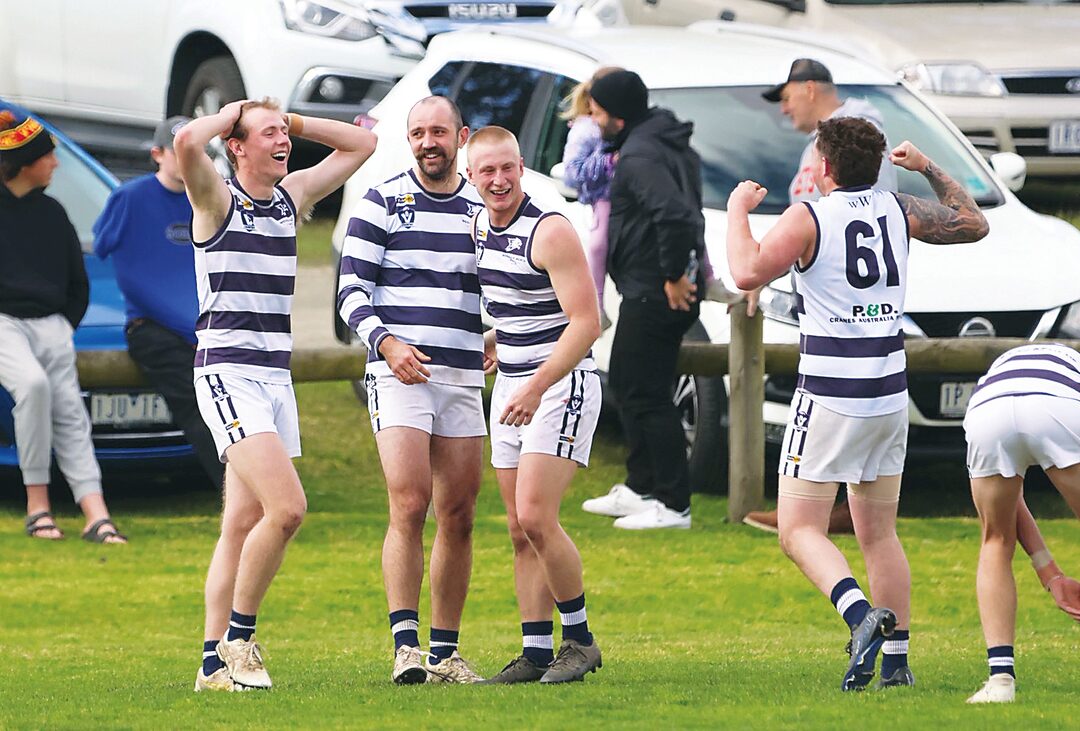 Woodside players react after winning the reserves first semi-final in extra time. Photos: Contributed