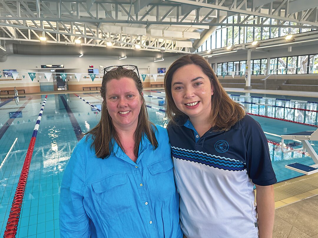 Sale Swimming Club president Kylie Watson (left) and vice-president Catherine Vassiliou at the new Aqua Energy refurbished swimming pools. Photo: Stefan Bradley