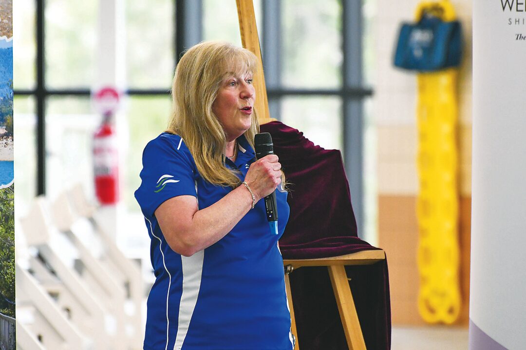 Gippsland Swimming president Jacqueline Madden speaks at the Aqua Energy relaunch on October 6. Photo: Stefan Bradley