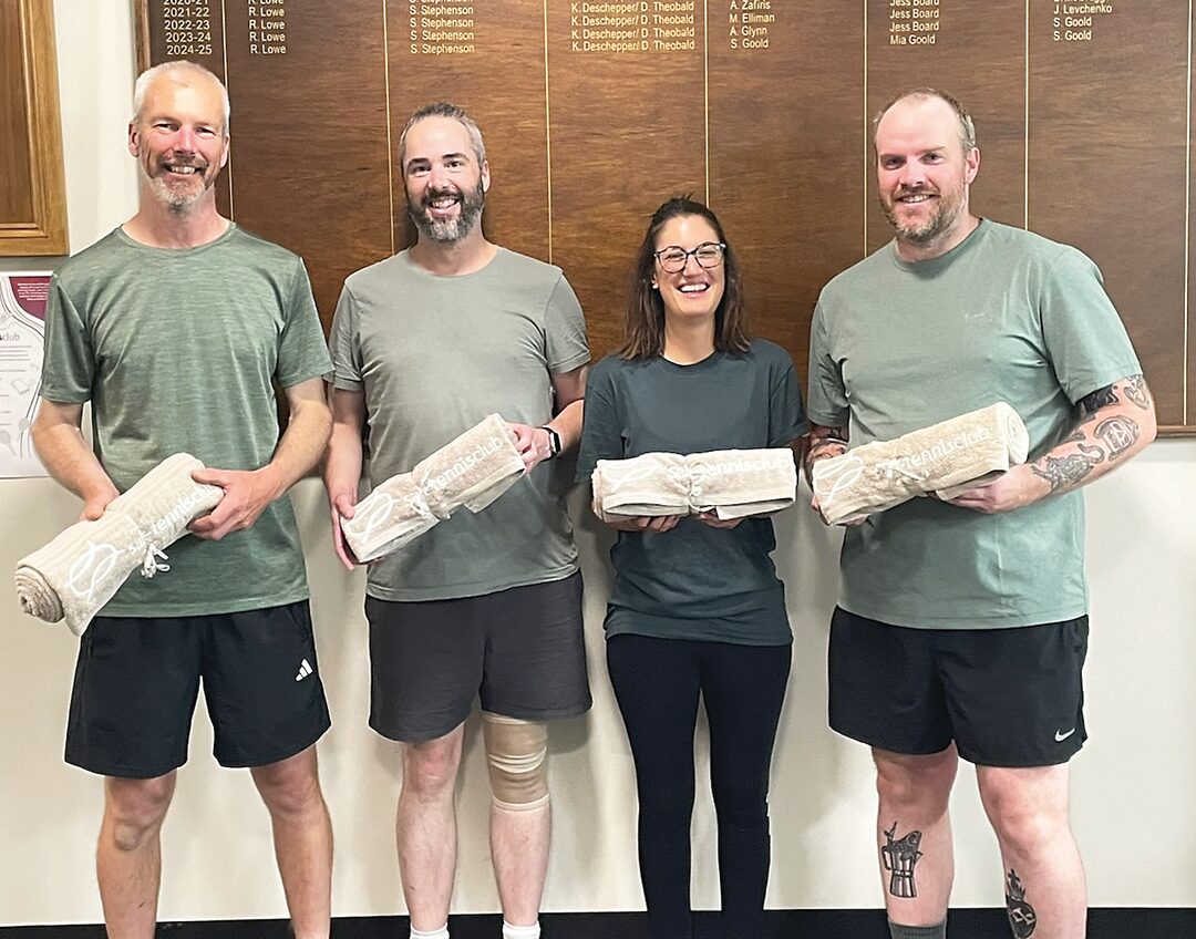 Tuesday night pennant winners Backhand Bandits (from left) Simon Cook, Damien Theobald, Nelly Buckle and Joe Goldsmith. Photos: Contributed
