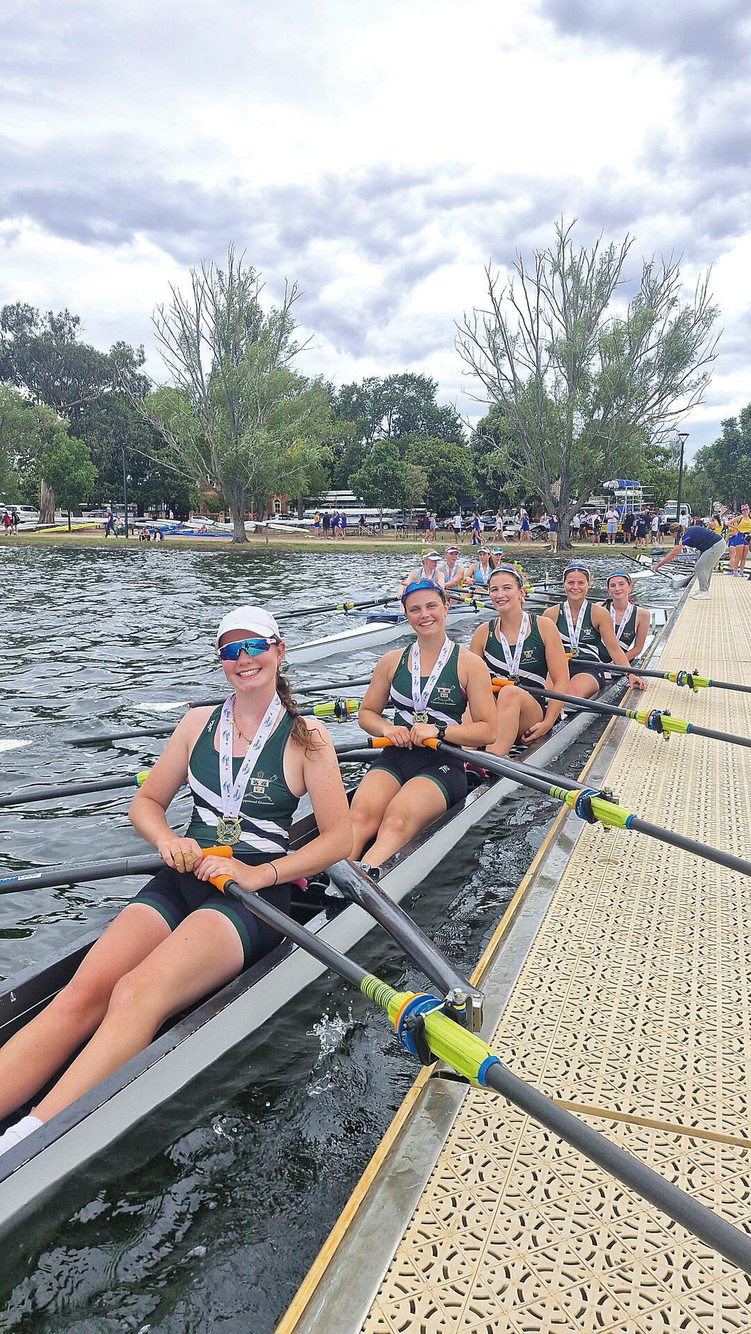Female school quad scull division one champions Eloise Tavasci, Lily Canfield, Rio Smith, Mia Kantzides and cox Chloe Olijnyk.