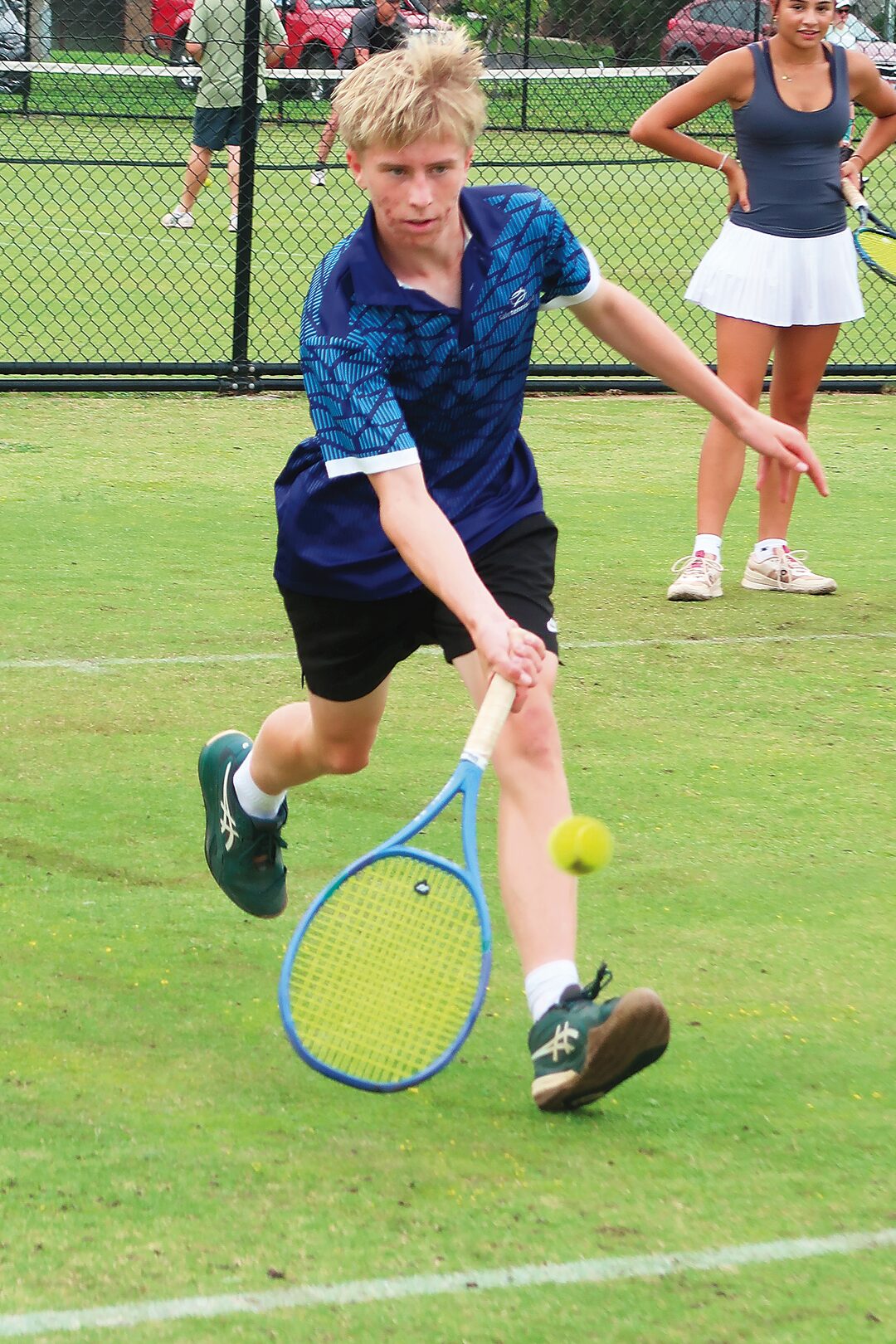 Section one senior, Campbell Scott of Sale, steps into retrieve a low ball.