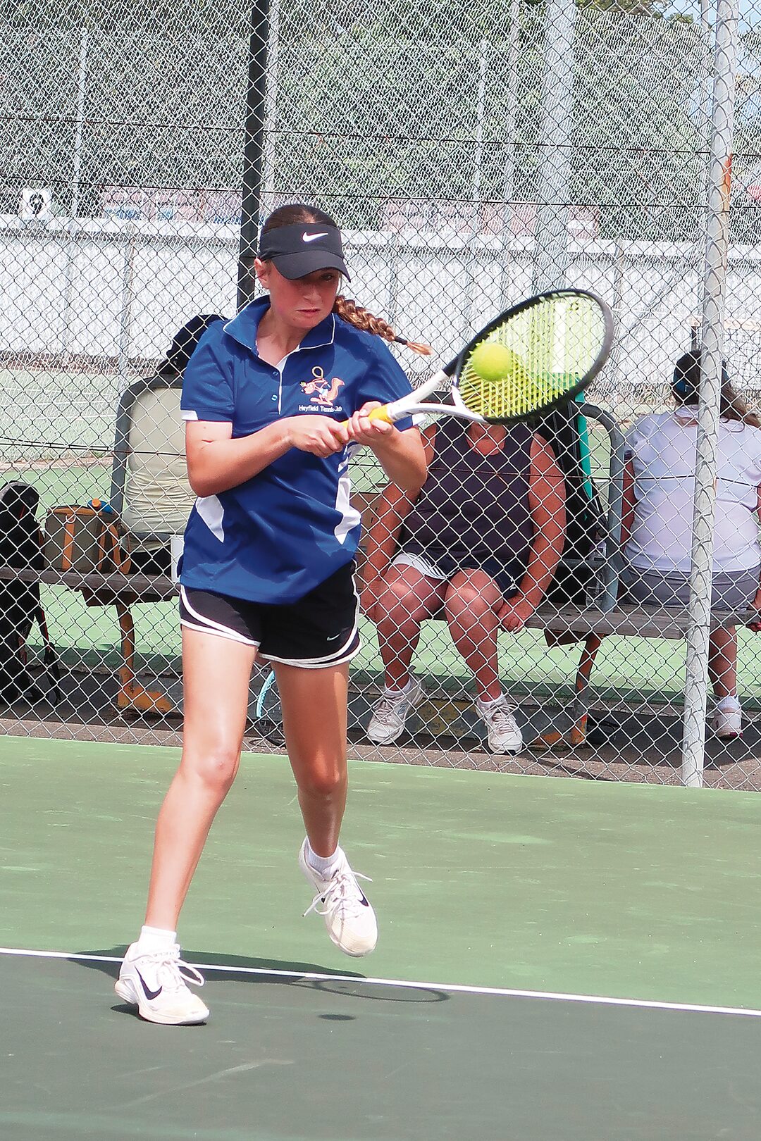 Section two senior, Kailin Smith of Heyfield, puts all her power behind a backhand.