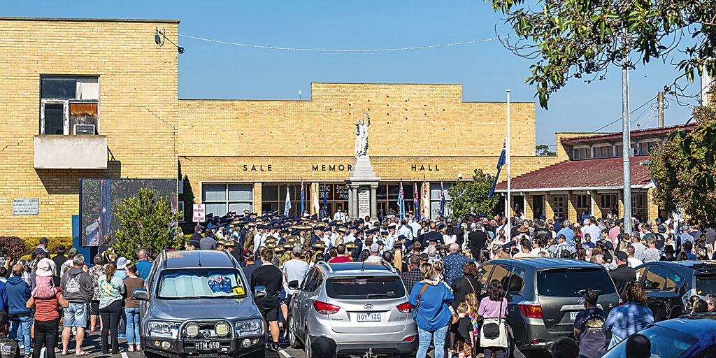 More than 1000 people funnelled into the Sale Memorial Hall courtyard and down MacAllister Street on Tuesday for the 10am 2023 Anzac Day service.